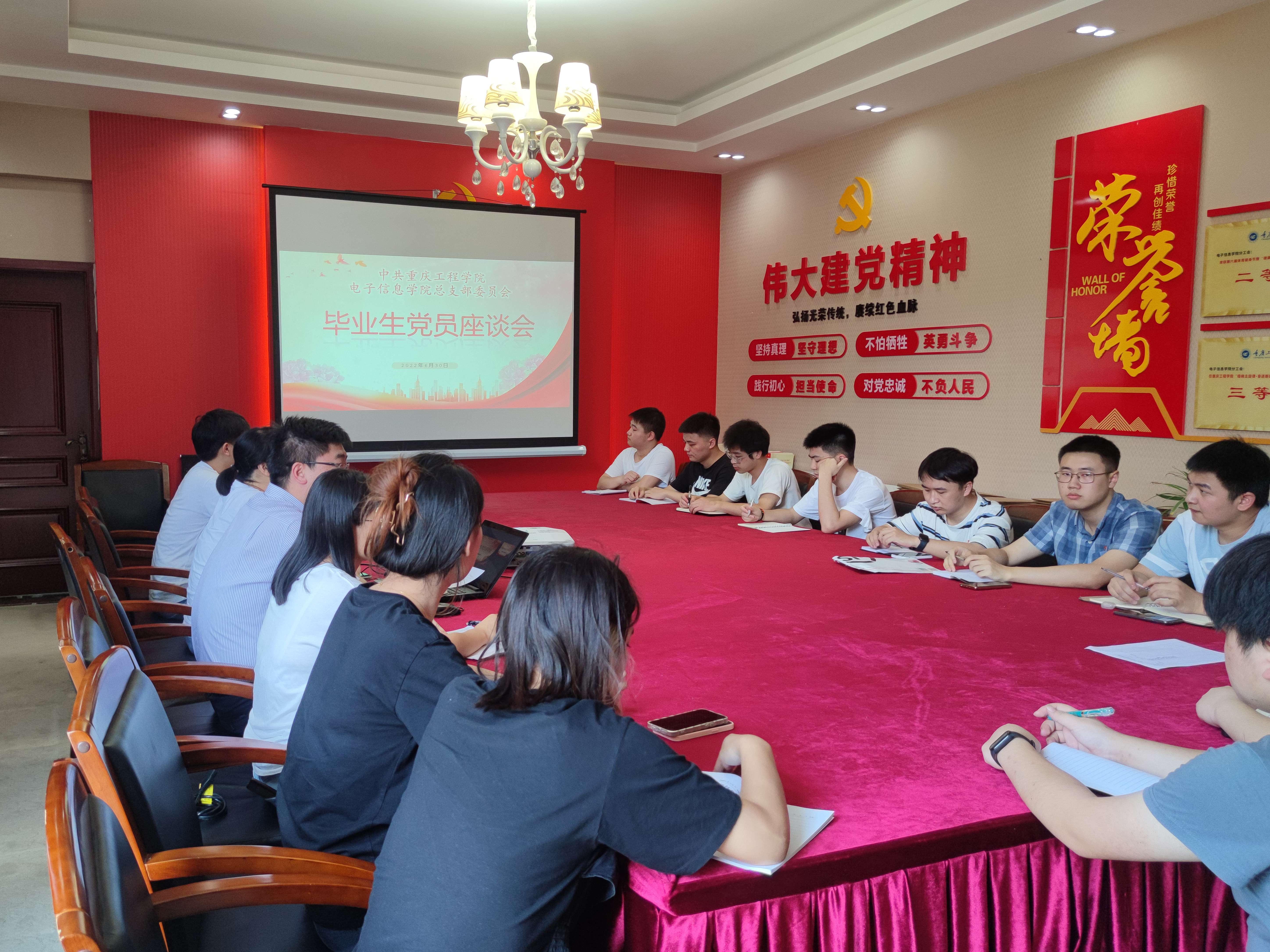 6月30日,电子信息学院党总支在党员之家召开2022届毕业生党员座谈会,学院党总支书记谭思宇同志、组织员魏登雪同志、学生第二党支部书记郭晓伟同志以及全体在校毕业生党员共计20余人参加会议。