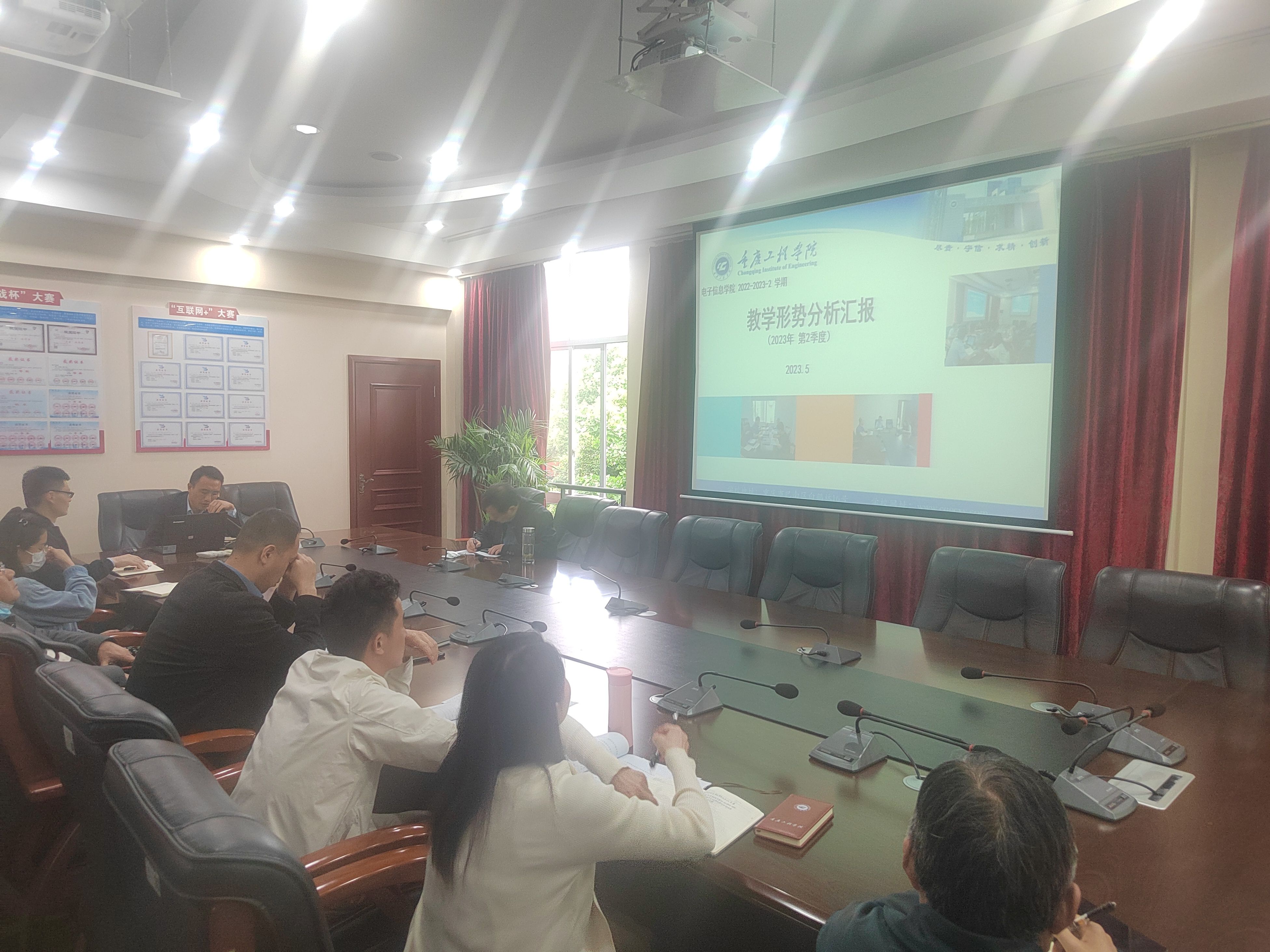 为规范教学管理,切实提升教学质量,电子信息学院于2023年5月10日下午在第七会议室组织召开了2022-2023学年第二学期教学形式分析会。会议由学院院长何世彪教授主持,学院副院长景兴红教授主讲,学院全体教师参加了本次会议。