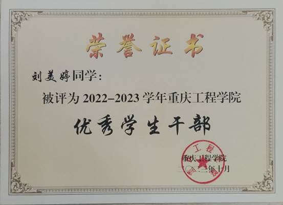 刘美婷,荣获电子信息学院“十佳学习标兵”荣誉称号。