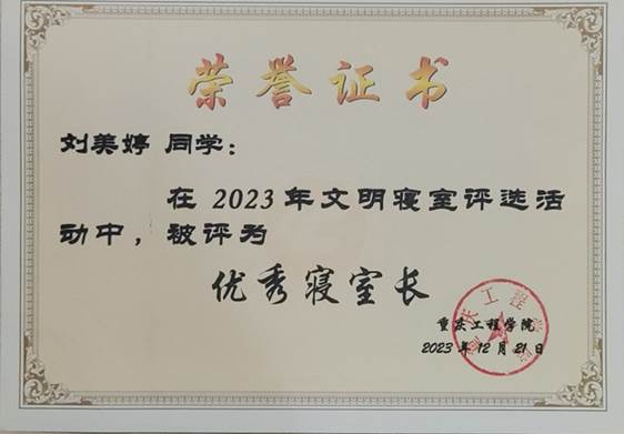 在工作和生活中,刘美婷担任班级的生活委员,积极为同学服务,对待工作一直认真负责,包括通知同学们进行寝室卫生检查,督促各寝室长安排同学打扫卫生,并在管理班级班费方面做到公开透明。对于同学们提出的任何问题,她都积极解决,按时并保质保量地完成各项工作。同时,她也还担任寝室长,团结寝室同学,积极参与活动,寝室也曾多次被评选为每周卫生最佳寝室之一。