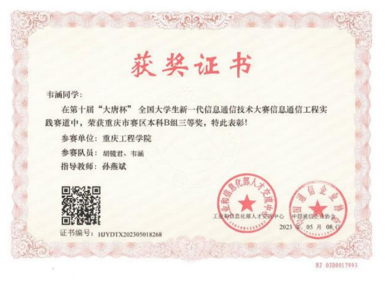 “等风来,不如追风去”。她始终以积极向上、乐观拼搏的姿态,在重工书写着属于自己的青春梦想。她是重庆工程学院通信工程专业2024届毕业生韦涵,现就职于一家国企——重庆盟讯电子科技有限公司,在硬件工程师的岗位上继续逐梦。