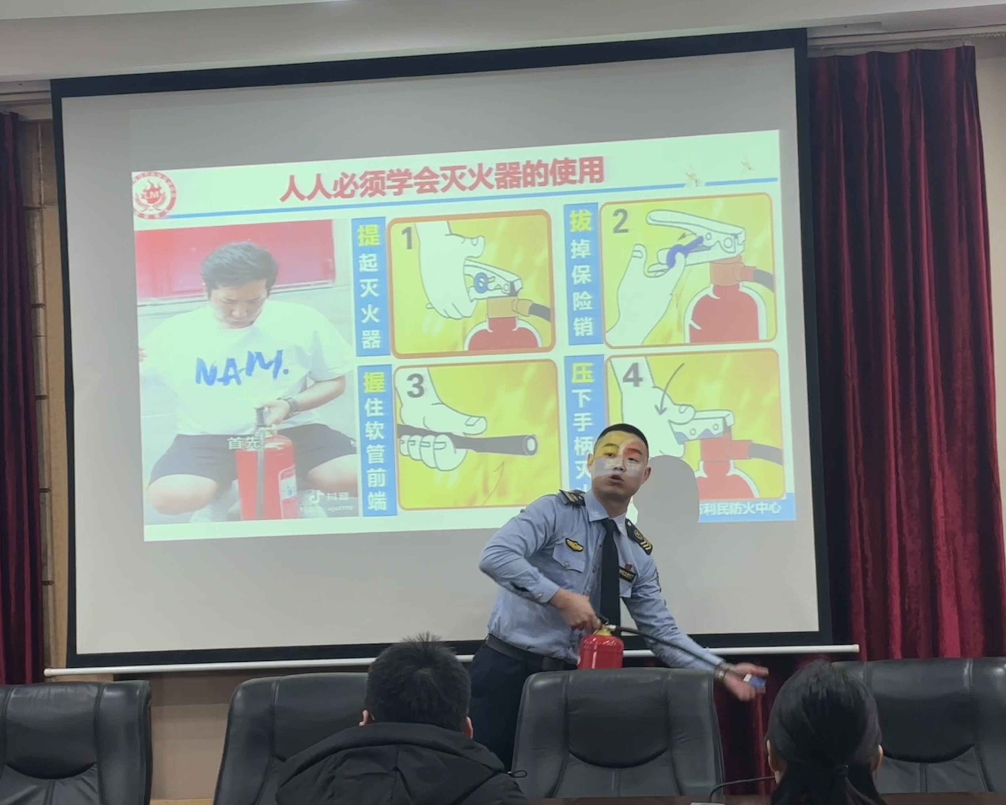 培训中刘教官通过真实的视频案例剖析,将火灾预防、火灾初期扑救、疏散逃生等进行详细讲解。同时,刘教官还详细地讲解了各类消防器材的正确使用方法,包括灭火器、消火栓等,让教师们对消防安全有了更加直观和深入地了解,并深刻认识到消防安全的重要性。