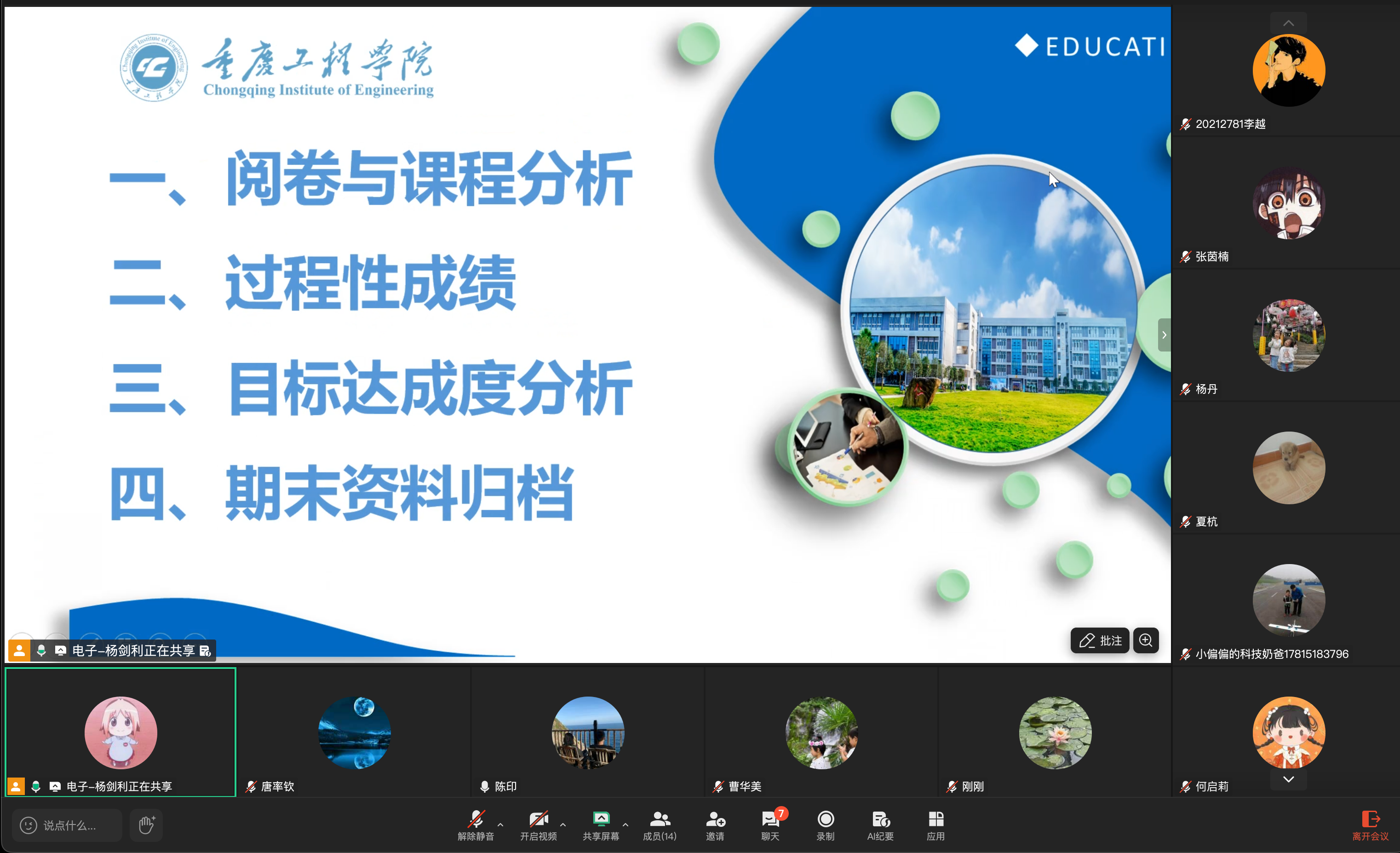 本次线上研讨活动进一步凝聚了质量共识,强化了教师的责任意识,为本学期教学工作的圆满收官及下学期教学质量的提升打下了坚实基础。