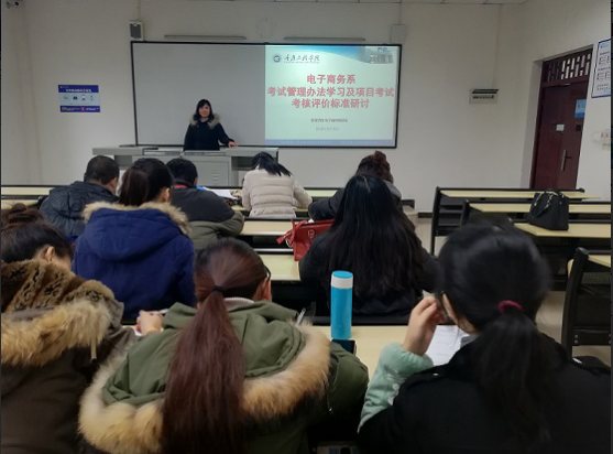 为了更好地开展本学期期末考试相关工作,帮助全体教师进一步明确期末考试相关规范制度,2018年12月12日14:00,在第6教学楼115教室,电子商务系组织开展了考试管理办法学习及项目考试(考核)评价标准研讨活动。