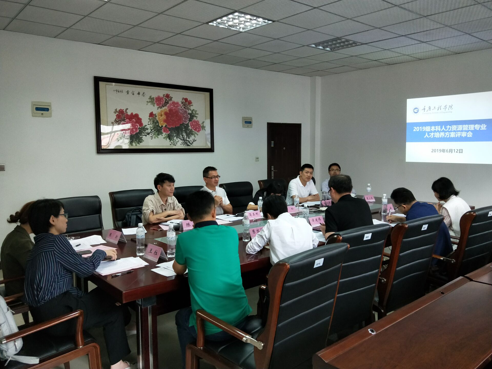 此次评审会议一共有四个议程。议程一,李玲副院长作为此次评审会议主持人,介绍了参会领导及会议目的。议程二,管理学院简玉刚院长对此次会议致辞。议程三,人力资源管理系主任徐先航汇报2019级人力资源管理专业人才培养方案。议程四,各位专家进行方案评议,并提出意见与建议。在会上,徐主任首先从专业调研和市场分析出发提出人力资源管理专业人才培养方案制定的背景和原则意见,然后提出了基于岗位胜任力的课程设置和人才培养模式,以及“一课双师”校企协调育人的授课方式。徐主任介绍完2019级本科人力资源管理专业人才培养方案后,与会的各位校企专家对方案进行了评议,并提出宝贵了意见。