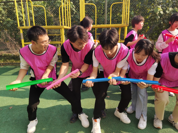 随着活动的展开,同学们全身心投入到各个拓展环节中,去体验极限挑战的吸引力,感受团队协作的魅力,如信任摔背后的决心、逃生墙低下的支撑、传球进杯的协作.......每一个小小的项目是如此,工作和生活亦是如此,我们只有对同伴绝对信任,彼此之间才能碰撞出不一样的火花。