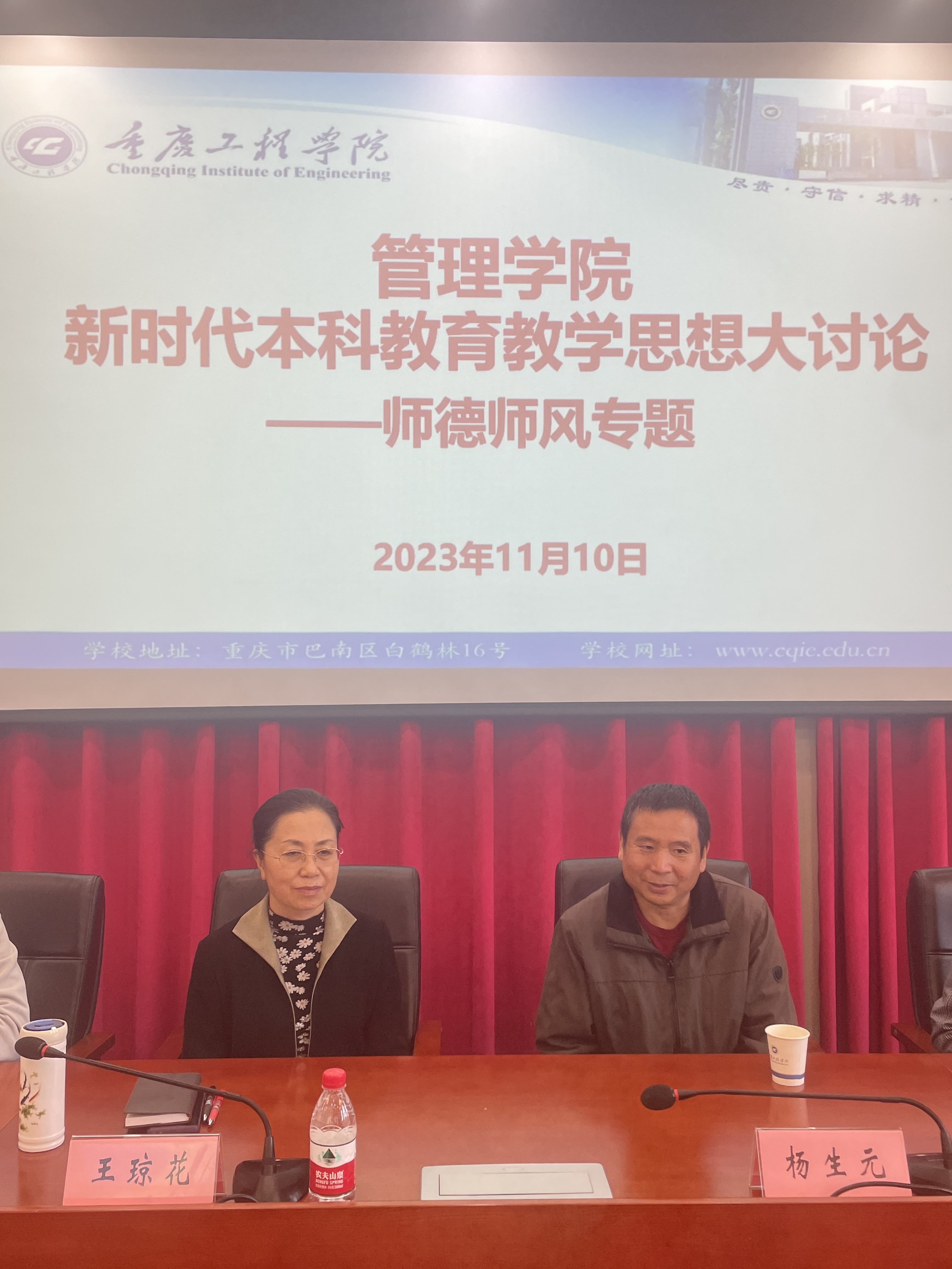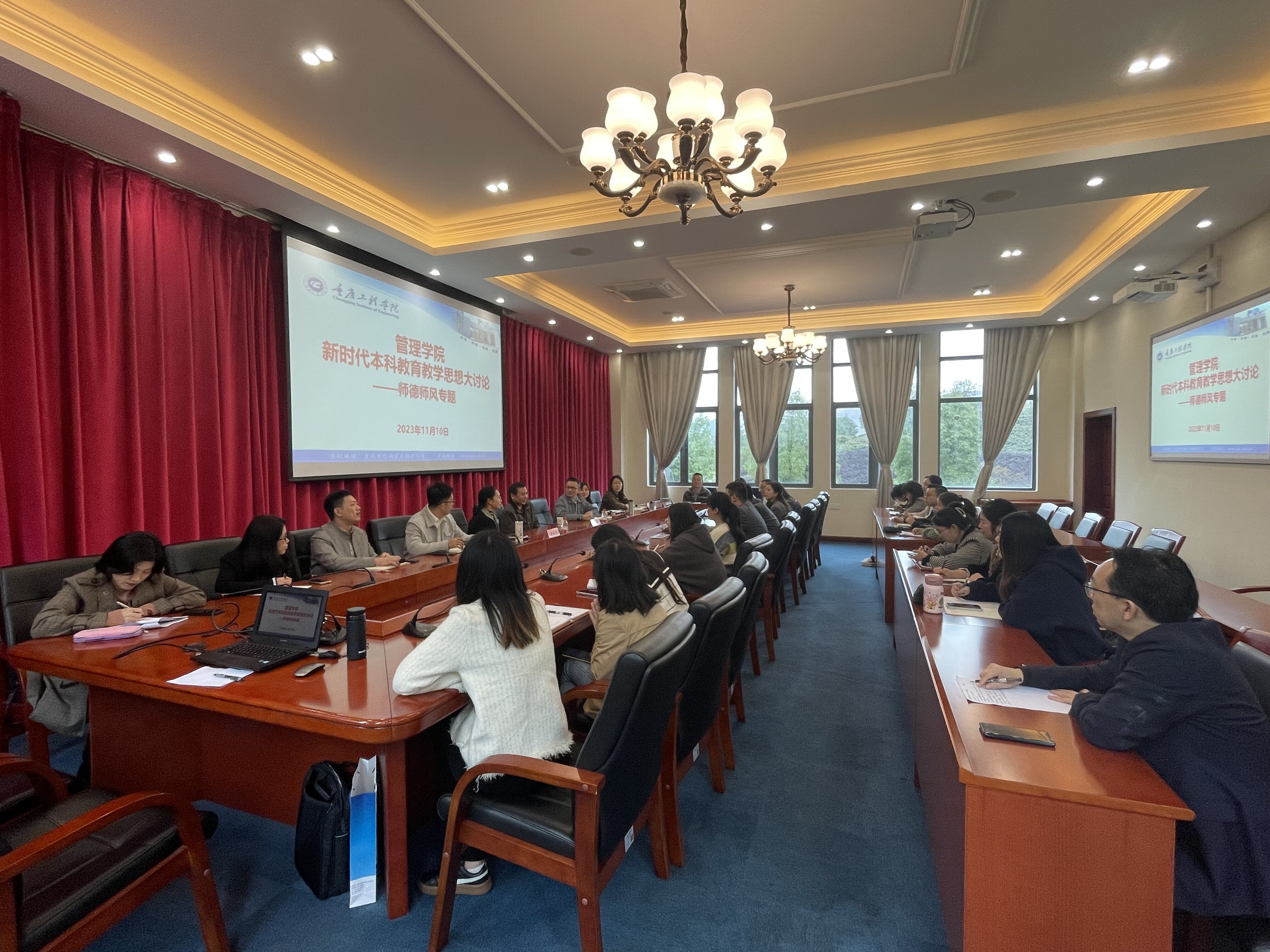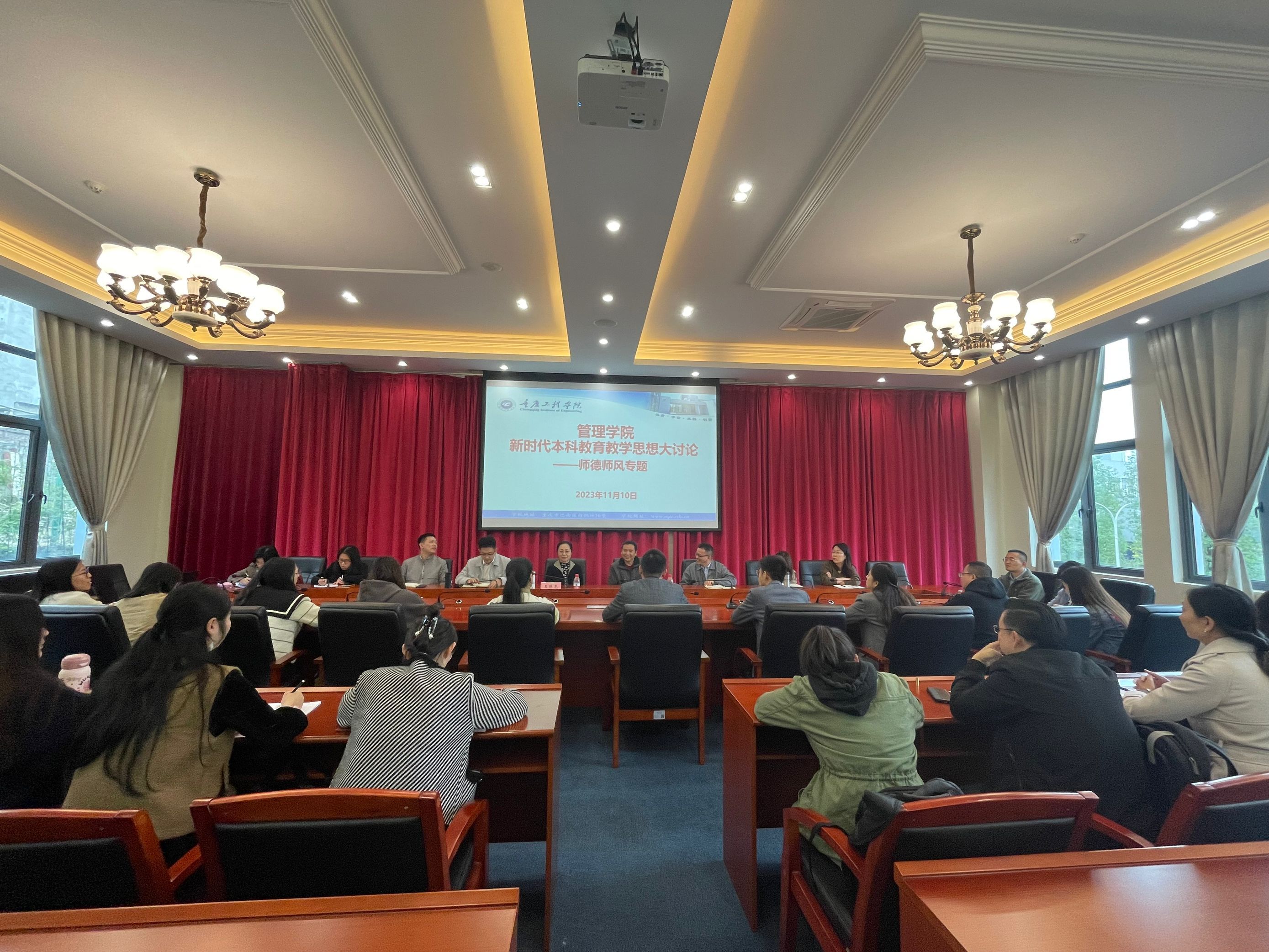 (文/图 管理学院 荣菁菁)为贯彻落实学校《关于开展2023年新时代教育教学思想观念大讨论的通知》文件要求,管理学院于11月10日在行政楼开展专题学习讨论,本次会议邀请到杨生元博士授课分享。副校长王琼花、校长助理兼管理学院院长简玉刚出席会议,管理学院全体院领导、教师代表参与会议。