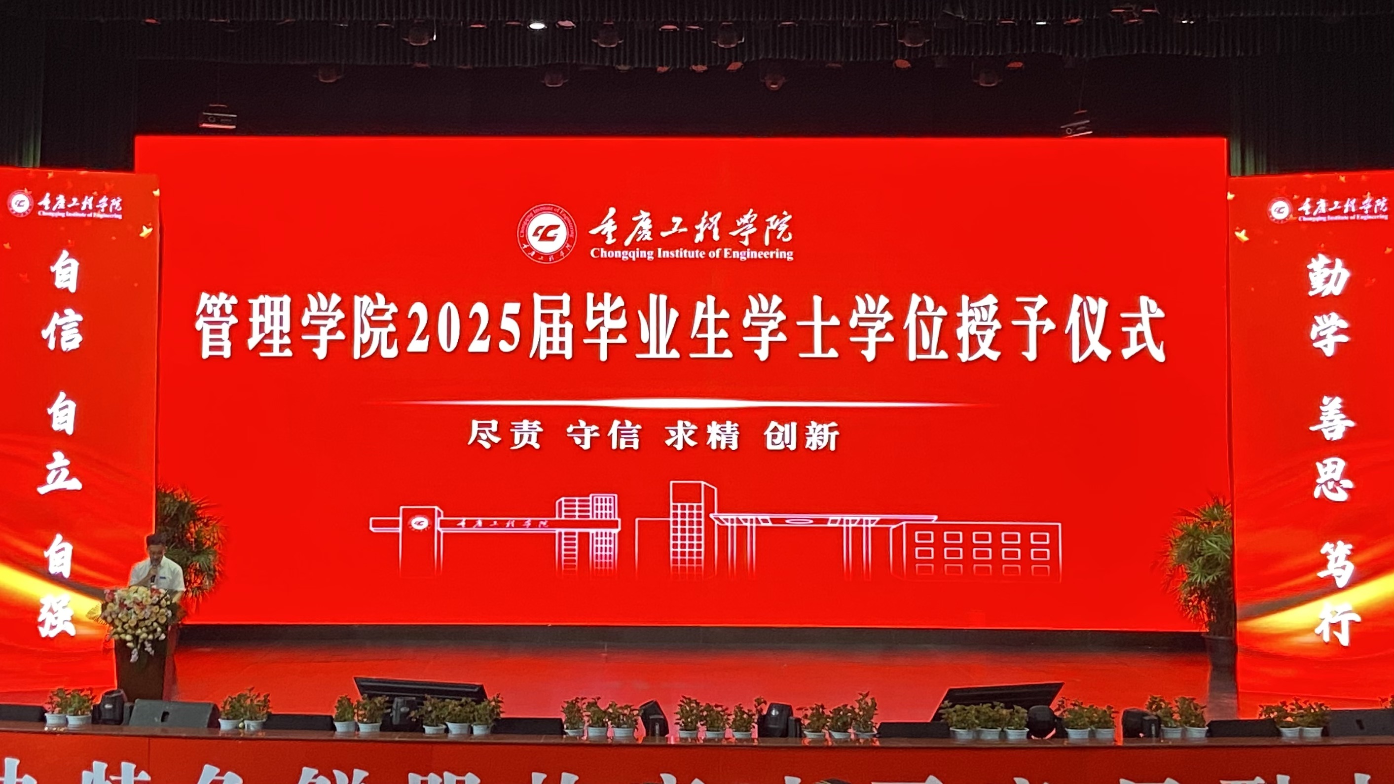 620日下午,重庆工程学院管理学院2025届毕业生学士学位授予仪式在学术报告厅隆重举行。学院领导、学位评定委员会委员、教师代表、家长代表及全体毕业生共同参加了这一庄重而温馨的仪式。仪式由学院党总支书记尚伟主持。