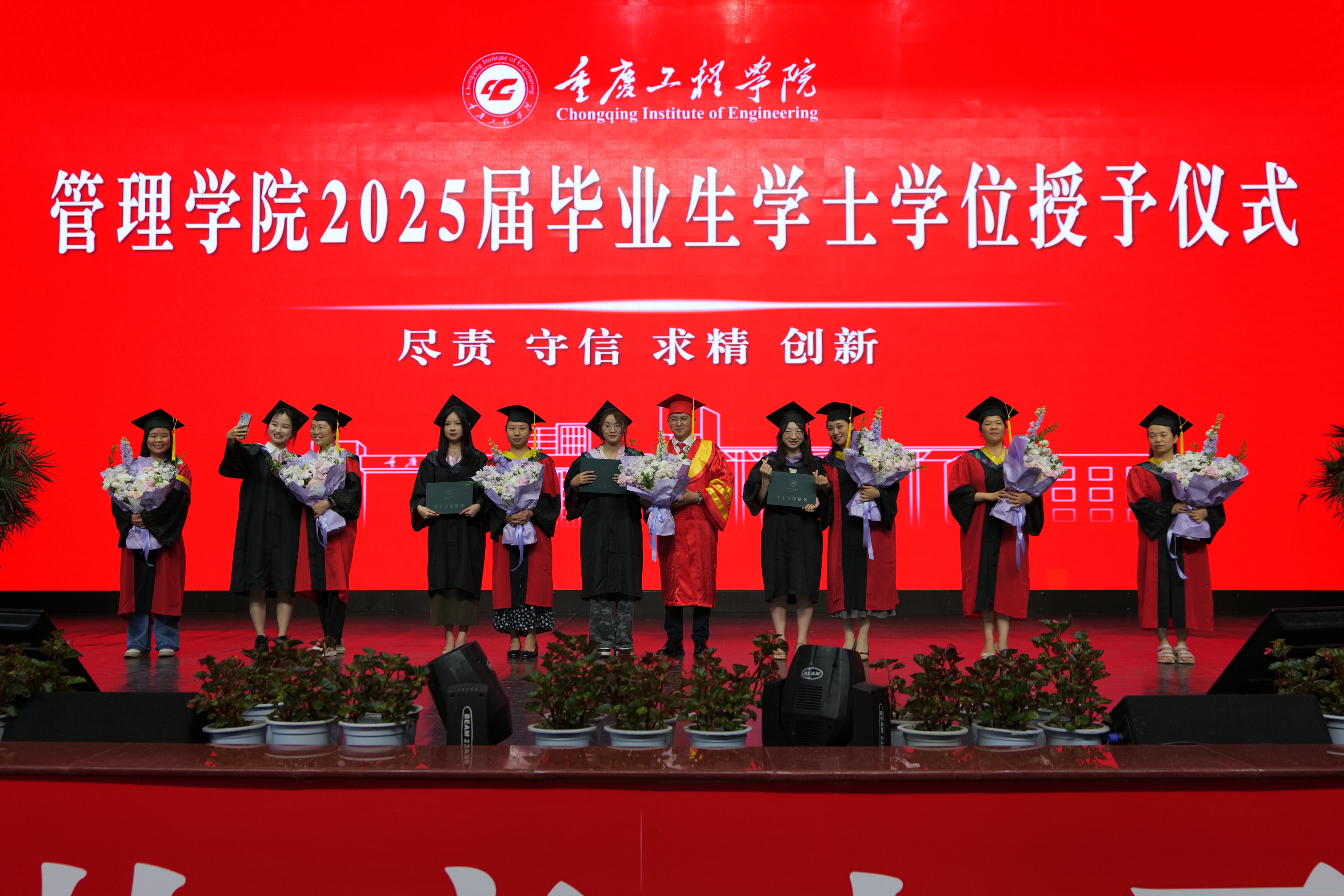 典礼在庄严的国歌声中拉开帷幕。学院副院长李玲教授宣读了《重庆工程学院学位评定委员会关于授予冯立等560名学生管理学学士学位的决定》,全场响起热烈的掌声,为学子们取得的成就喝彩。