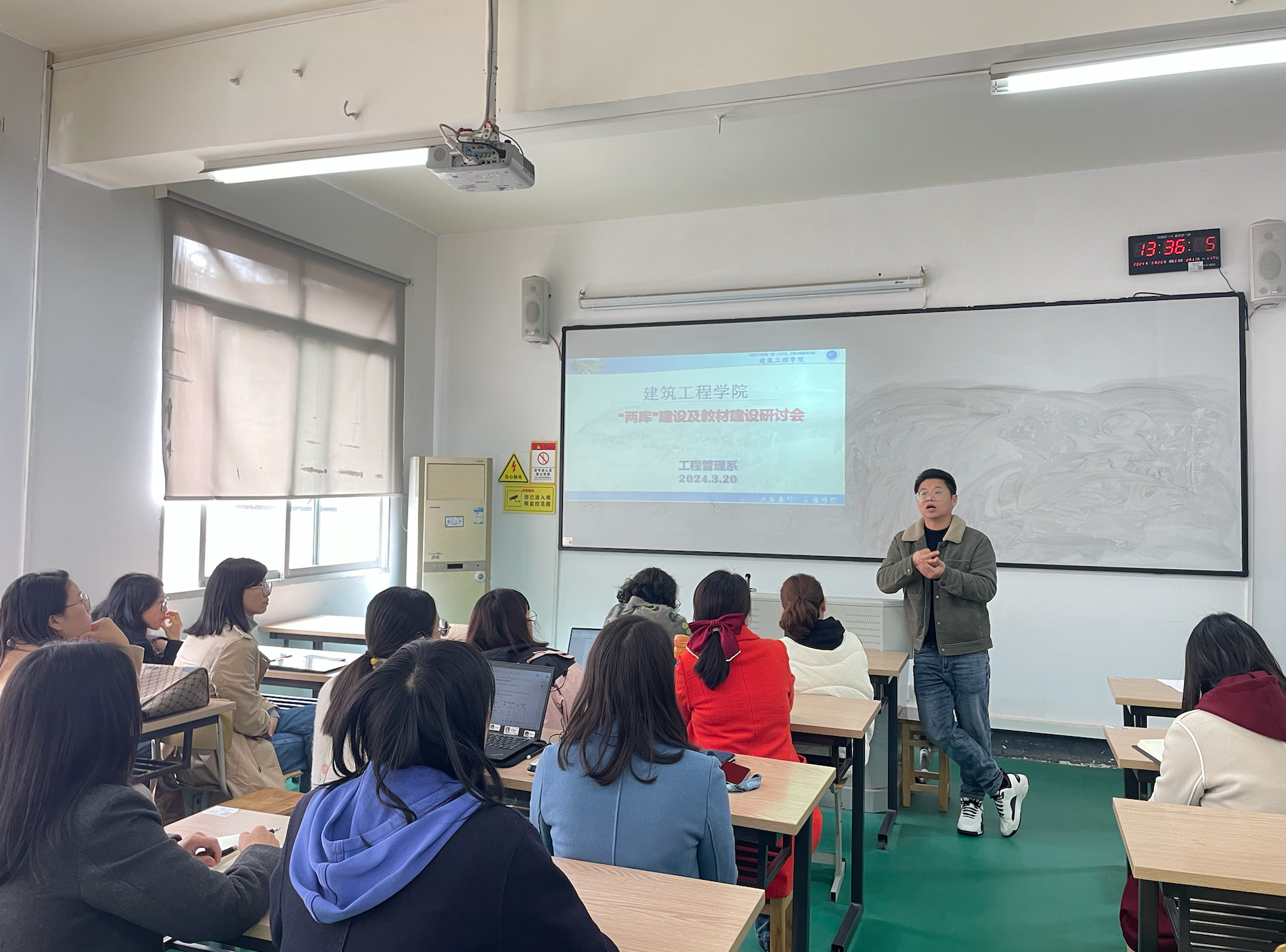 本网讯(文/图 王娜)3月20日,工程管理系在第一教学楼301召开“两库”建设与教材建设研讨会,本次研讨会由安雪玮主任主持,校督导塔怀红老师、罗鼎元老师,以及系部全体教师参加。