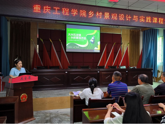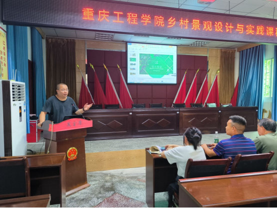 本网讯(文/图 庞雨珊 吴俊峰)2024年5月27日下午2:00,在重庆巴南区石龙镇政府会议室齐聚了重庆工程学院30余名师生,举行了《乡土景观设计与实践》课程的结题汇报,石龙镇规建办刘劲松主任、合路村与大兴村委代表参与了方案汇报。