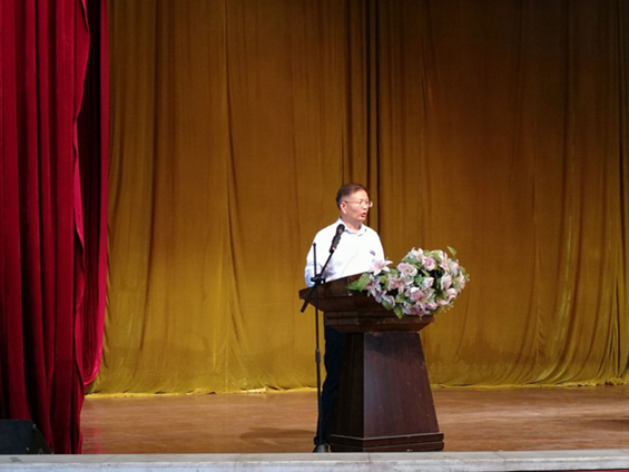 最后,校党委副书记盛友兴做出重要讲话,他对全院师生提出三点要求:一、高度重视学生的道德教育,培养大学生的人文精神;二、高校教师要对大学生合理“增负”,提升大学生的学业挑战度;三、师生们要提高自己的阅读量,培养良好的读书习惯。