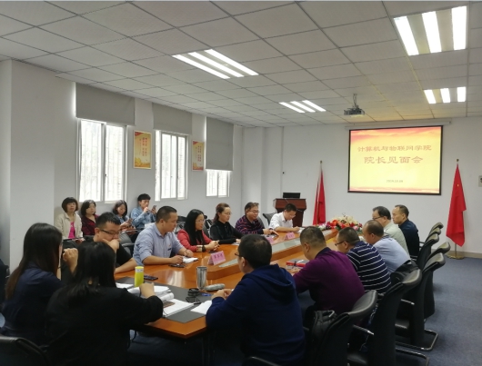 本网讯(文/图 罗桓)2019年10月9日中午13点30分,计算机与物联网学院在实习楼104会议室召开了学院院长见面会,学校副校长王琼花出席,会议由党总支书记覃华伟主持,全院教职工参加会议。