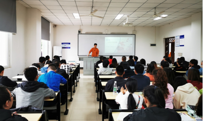 本网讯(文/图 张峤)2019年10月23日下午,计算机科学与技术系在第六教学楼115教室开展“2017级计科专业班导师辅导之经验分享”讲座,由计算机科学与技术系张峤老师主持,三位大四学生(周厚余、郭海滨、罗伟刚)分享创业、就业和比赛。