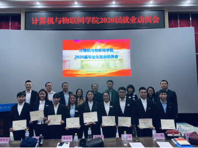 本次会议由魏科长主持。首先,学院党总支书记覃华伟作了动员讲话。覃书记指出,同学们即将从校园走进社会,首先要学会做人做事;他激励毕业生要积极就业、主动就业,不能等靠要。第二项议程由学生代表周绪霞发言,她不仅总结了自己就业目标,也呼吁同学们走出自己的就业路。会议第三项议程,组织了第一届“码农杯”就业技能竞赛的颁奖仪式,学院领导为10名获奖的同学进行颁奖。会议第四项,由学院院长杨国才发表动员讲话,肯定了2020届毕业生获得的优异成绩,指出我院就业方向广,未来一段时间社会仍对专业高端人才有很大需求,但我院毕业生也将会面临日趋激烈的竞争,还需要更加努力。同时,他还针对简历制作、求职面试等内容给同学做了经验分享。然后,由主持人魏克非提出毕业生需要明确就业工作的有关要求,如对自己的能力认识、专业知识过硬,求职能力等等。会议最后,参会人员集中签署了《就业工作“三严禁四不准”告知书》。