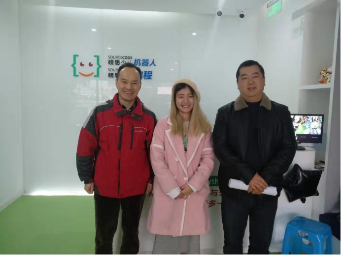 重庆纳斯克科技有限公司位于重庆市渝北区,主要从事少儿编程和少儿机器人教学等少儿培训业务。公司负责人许经理热情接待了走访组一行。许经理详细介绍了当前少儿培训教育行业的形势以及公司的经营状况,对机器人教学班和少儿编程班(C++)的培训内容进行了介绍演示。丁志强老师还与两个班级的主管教师进行了认真交流,详细了解了教师岗位和营运岗位对学生的能力素质需求。最后,走访组还与在此实习的两名软件学院2020届毕业生进行了交流,详细了解了同学们的薪资待遇及未来规划。