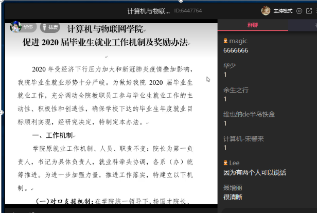 本网讯(文/图 魏克非)2020年3月18日14时,我院于QQ群课堂召开了就业工作网络会议,会议由覃华伟书记主持,全院50余名教职员工参加了此次会议。