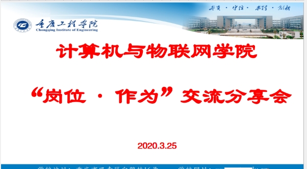本网讯(文/图 罗桓)2020年3月25日下午,计算机与物联网学院通过腾讯在线会议组织召开了“岗位 作为”工作交流分享会。学院院长杨国才主持了会议。