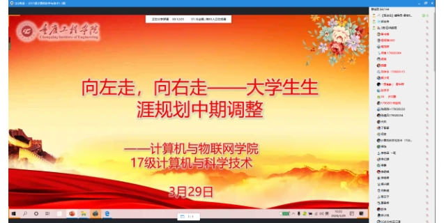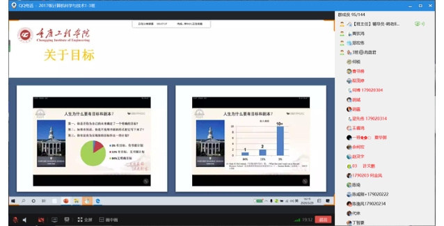 3月29日,为使同学进一步明确学习方向,端正学习态度,找准差距,查漏补缺,计算机与物联网学院组织开展“向左走,向右走”——大学生涯规划中期调整主题班会。此次班会,按照“提出问题、分析问题、解决问题”的主线展开,具体过程分“一说、二议、三规划”三步走。一说,即说出梦想,回忆对大学生活的美好憧憬;二议,即分享过程,分析过去两年(三年)大学生活的得与失;三规划,即结合实际,重新设计和调整各自的大学生涯规划。在欣赏完优秀同学取得的成绩,观看《我的大学生活》视频后,老师们也指出,大学是人生的关键阶段,所有同学都应当认真把握每一个“第一次”,让它们成为未来人生道路的基石,更要珍惜每一个“最后一次”,不要让自己在不远的将来追悔莫及。与会同学也纷纷畅所欲言,检讨过去的得失。相信在返校后,同学们一定会以一个更加出色的状态迎接新学期的到来。