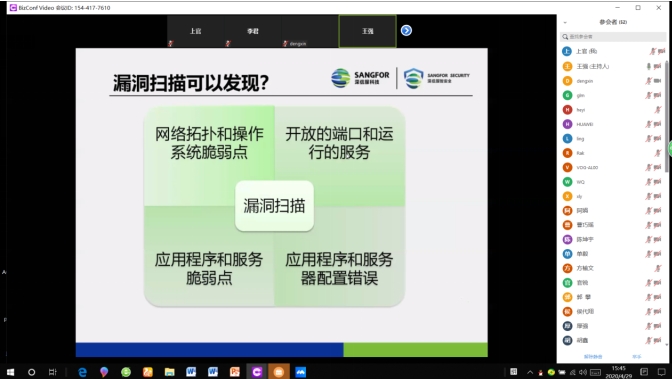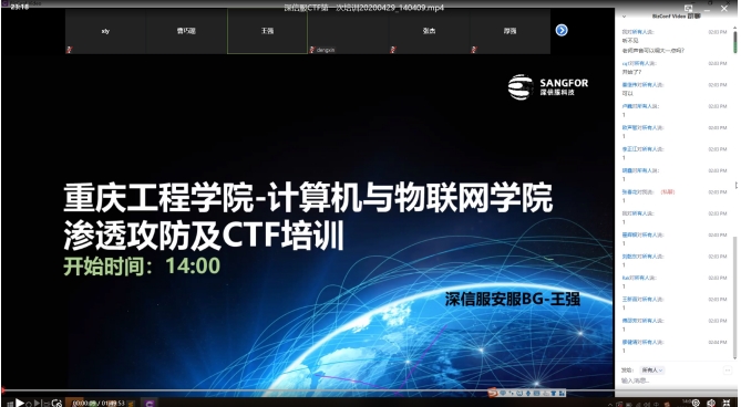 本网讯(文/图 官节福)2020年4月29日14时00分,重庆工程学院60余名学生通过BizConf Video视频会议终端参加了第二届“网鼎杯”网络安全大赛赛前第一次网络培训。