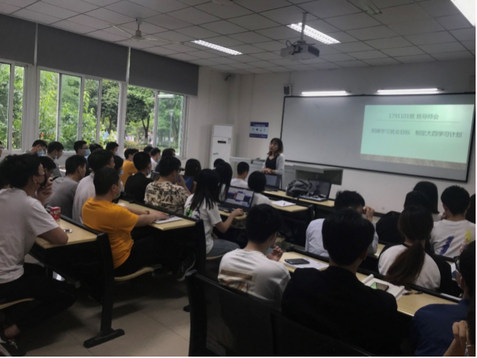 本网讯(文/图 秦旗)随着这学期期末的到来,17级同学的大三学年即将结束。计算机与物联网学院秦旗老师组织1791101班于2020年6月22日在6118教室召开“明确学习就业目标,制定大四学习计划”主题班会,本次班会活动由秦旗老师主持,全体同学参加。