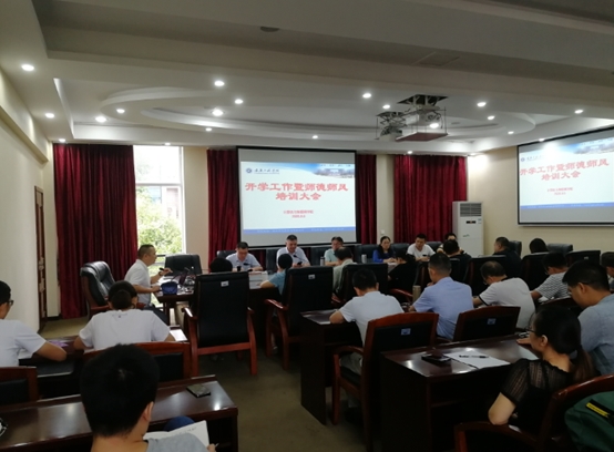 覃华伟书记代表学院对新教师表示欢迎、提出希望,对暑期疫情防控、就业、学工等工作进行了小结,对学期工作进行部署,并重点对合格评估工作做了再动员,最后从何为 “师德、师风”、违反师德师风的现象及原因、学高为师德高为范等三个方面为全院教师做《加强师德师风建设 做“四有”好老师》专题培训,对教师特别是新入职教师提出了做“有理想信念,有道德情操,有扎实知识,有仁爱之心”的“四有”新老师的殷殷期盼。