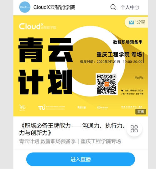此次讲座由我院联合阿里云重庆创新中心共同组织的“青云计划”第一场活动。阿里云重庆创新中心推出的“青云计划”数智职场预备季特训项目,是在中国高校创新创业教育联盟云专业委员会、重庆数字经济产教融合人才发展联盟的指导下,由行业龙头企业、知名高校一线教师、阿里云创新中心、CloudX云智能学院共同研发,面向重庆本地应用型本科院校相关技术专业方向及相关交叉学科专业开设的创新创业与职场预备训练项目。项目旨在帮助相关专业学生实时更新数字经济产业发展、行业动态、企业组织,同时前置规划个人职业发展路径、提升职场通识必备技能、掌握创新创业发展趋势,提前为数字经济方向行业就业与创业做好准备。