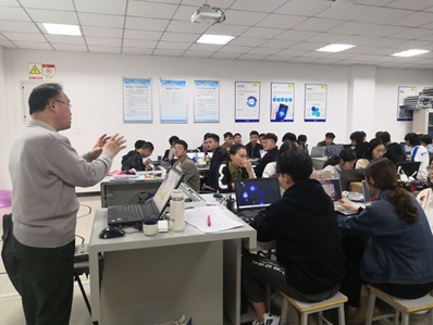 本次培训由我院物联网工程学科带头人宋文强教授授课。宋教授的课程深入浅出,他总能举出许多生动有趣而又贴近生活实际的应用实例,让枯燥难懂的技术问题变得易于理解。同学们很享受这个过程,就连下课时间也不愿错过。在宋教授的带领和三位18级学长的热情相助下,本次培训取得圆满成功。