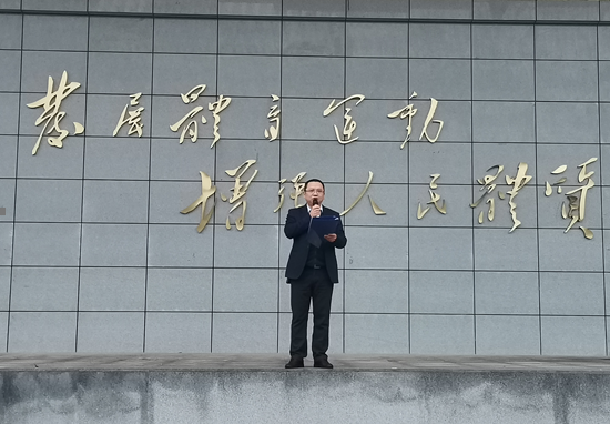 参加升国旗仪式的同学整队完毕。国旗护卫队迈着慷锵有力的步伐,护送国旗前进。在庄严雄壮的国歌声中,五星红旗冉冉升起,全体师生行注目礼,齐唱国歌。