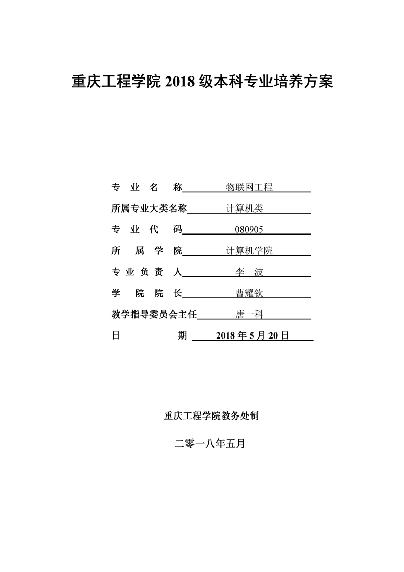 2018级本科专业人才培养方案-物联网工程