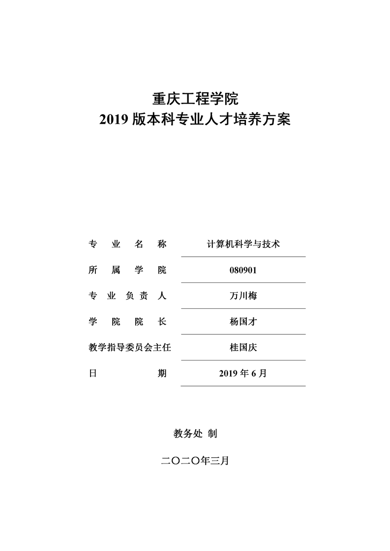 2019版本科专业人才培养方案-计算机科学与技术
