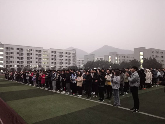 本网讯(文/图 胡锦舟/龚艺平)期末将至,为建设良好的考风考纪,使同学端正考试态度,计算机与物联网学院于2020年12月23日7:20-8:00在足球场举行“诚信应考”活动。我院院长杨国才、党总支书记覃华伟、副院长谢正兰、谢箭和全体辅导员,以及18、19级全体学生参与本次活动。