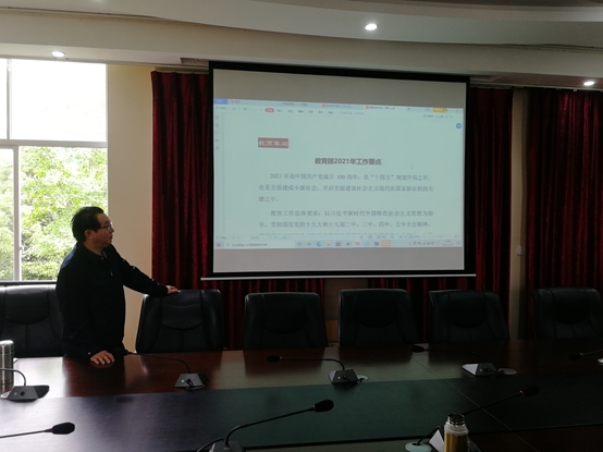 本网讯(文/图 罗桓)2021年4月22日中午1点,计算机与物联网学院在学校第七会议室组织集中学习《高教动态》,杨国才院长带领全院教职工精要学习教育部2021年工作要点和教育部长陈宝生在2021年全国教育工作会议上的讲话。