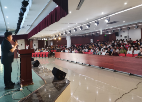 本网讯(文/图 魏克非)为进一步指导学生树立正确就业观,着重解决”面对就业压力,我们该怎么办“这一问题,2021年6月16日16时,我院邀请重庆瑞萃德科技发展有限公司曹怀志总经理在双桥校区报告厅组织了主题为“发展未来之路”的就业讲座,我院大一600余名学生参加。