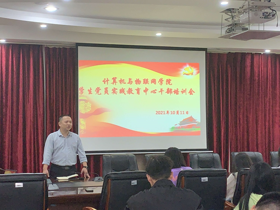 本网讯(文/图 潘晓宇)为进一步提升学生党员实践中心党建工作水准,充分发挥学院党务工作好帮手作用,2021年10月11日,计算机与物联网学院学生党员实践教育中心于办公楼二楼会议室召开了学生党员实践中心干部培训会。学院党总支书记覃华伟、组织员潘晓宇学生支部书记、组织委员以及中心全体成员一同参加本次会议。