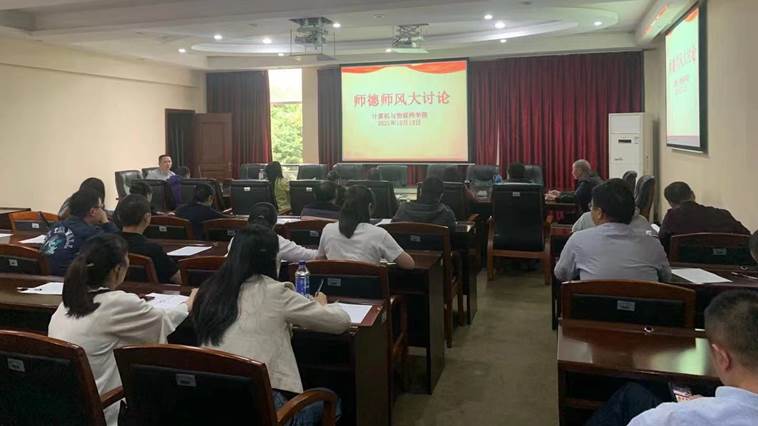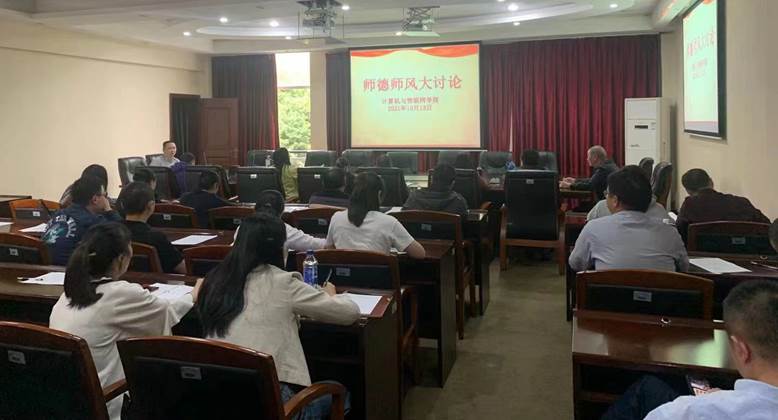 本网讯(文/图 刘逸琛)为深入学习贯彻习近平总书记全国教育大会及教师队伍建设、师德师风建设重要讲话精神,更深层次加强教师队伍建设,提高教师自身修养,树立教师形象,计算机与物联网学院于2021年10月13日召开师德师风大讨论。本次会议由党总支书记覃华伟主持,计算机与物联网学院全体教职工参会。