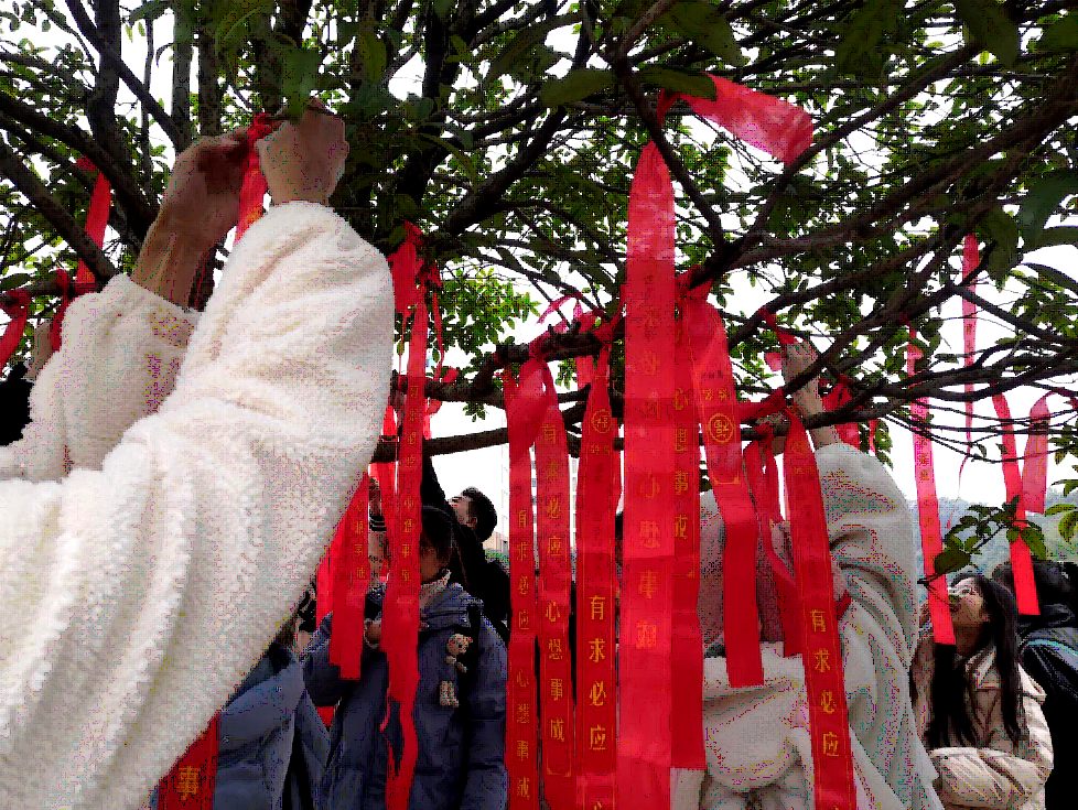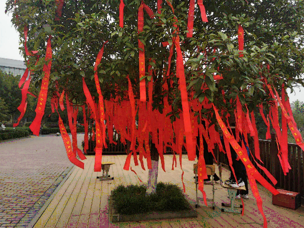 首先,由各班班长统一领取许愿带后分发给各班同学。然后,同学们在许愿带上面写下对期末考试的美好祝福:“思虑心平定,谨慎落笔闲;准备充分、心情放松、审题仔细、字迹工整、成绩优异;考得都会,蒙得都对......”最后,由各班班长带领同学们将许愿带挂在许愿树上。许愿树上挂满了红色许愿带,载满了我们的愿望,伴随着微风轻轻飘着。希望许愿树活动能为同学们带来一份好心情,同时也鼓励同学们在无涯的学海中获得广博的知识,取得优良的成绩。