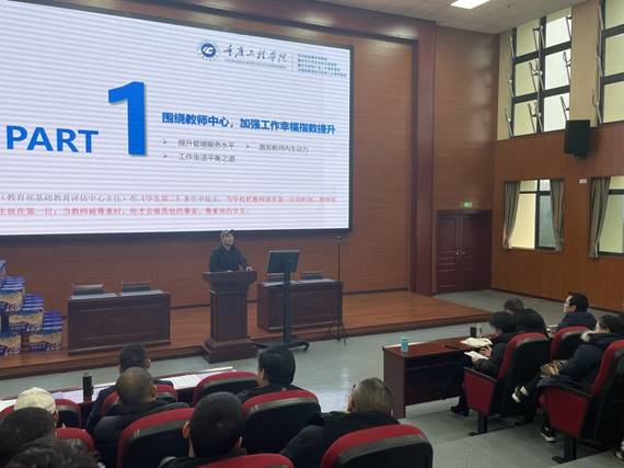院长李发陵以四个“围绕”、四个“加强”,全面推进学院工作”为题,从教师的工作幸福指数、教学建设规范、学工成效提升、高层次成果突破等四个方面梳理总结了学院一学期的工作。院长的总结既有对教师的关怀,对学院各项工作总结,也有对2022年学院工作的计划部署,这增添了老师们的信心,必将推动学院工作上一个新台阶!