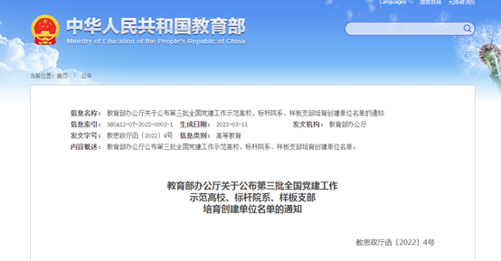 计算机与物联网学院党总支入选第三批全国高校党建工作标杆院系培育创建名单