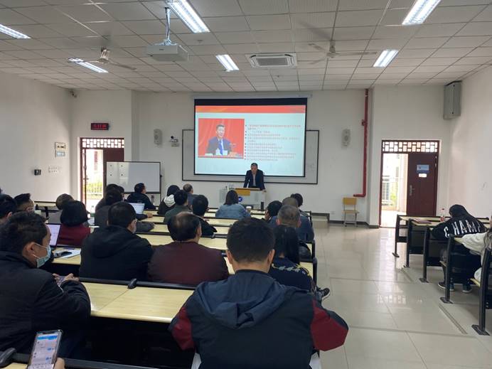 本网讯(文/图 潘晓宇)2022年4月6日,计算机与物联网学院在6203召开教职工思想政治理论学习会。会议由党总支书记覃华伟同志主持,全体教职工参会。