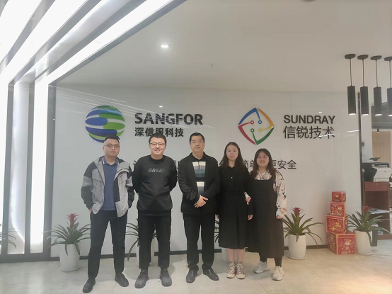 本网讯(文/图 魏克非)2022年4月12日上午,我院网络工程系张杰主任、就业科魏克非老师一行2人走访了深信服科技股份有限公司重庆办事处。