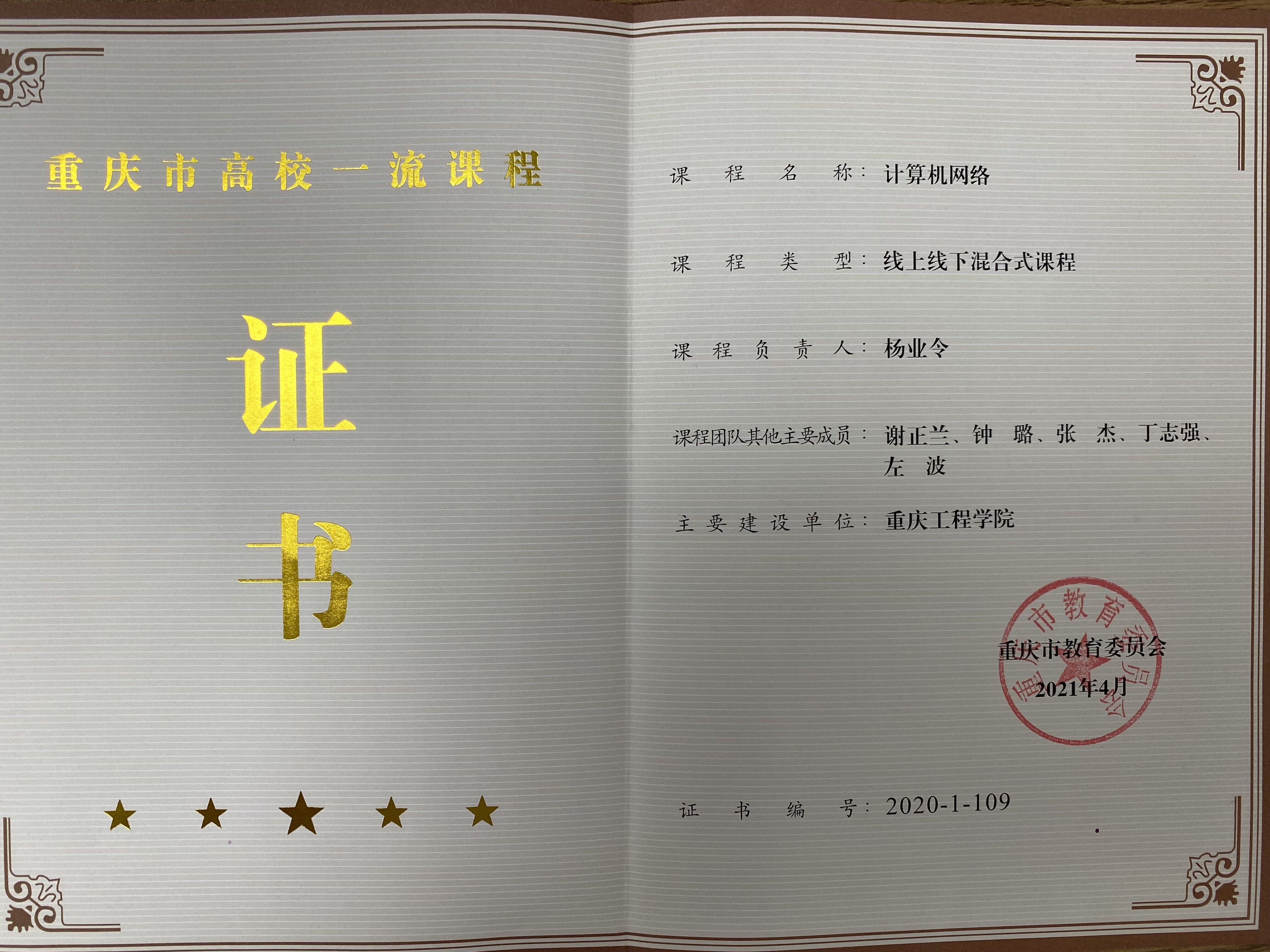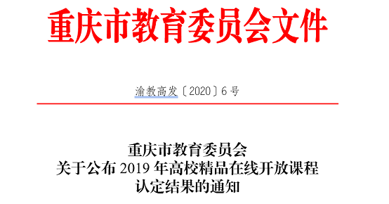 根据《重庆市教育委员会关于公布2019年高校精品在线开放课程认定结果的通知》(渝教高发〔2020〕6号)公布的结果,我院杨业令老师申报的《计算机网络》被认定为重庆市高校精品在线开放课程。据了解,重庆市教委于 2017年启动首批重庆市高校精品在线开放课程认定工作,在各校推荐申报的基础上,专家对内容质量、学术水平、课程应用共享效果等方面进行综合审议,最终认定并公示出精品在线开放课程。