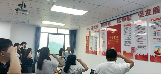 最后,在党总支书记覃华伟同志带领下全体党员同志面对党旗重温入党誓词。铿锵的誓词时刻代表着毕业生党员们不负韶华,不负时代,强国有我,奋斗青春的决心,实现中华民族伟大复兴的担当和使命。