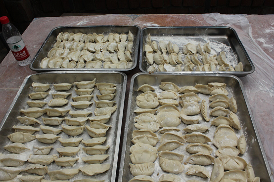 准备工作就绪后,同学们以小组为单位开始忙碌,辅导员张运老师也加入包饺子的阵营中,有经验的同学熟练地取面皮、拌馅料、包饺子,一气呵成,十指翻飞之间,一个个精巧的饺子就在灵巧的手中诞生。在师生的互相支持和共同努力下,饺子很快就包好了。整个活动过程中大家其乐融融,在劳动中分享经验,在协作中交流感情。同学们通过自己的实践明白了粮食的来之不易和重要性。 此次活动提高了同学们爱粮节粮的意识,同时也增进了队伍之间的感情,让此次“三下乡”社会实践活动更添一份相亲相爱与团结和睦。