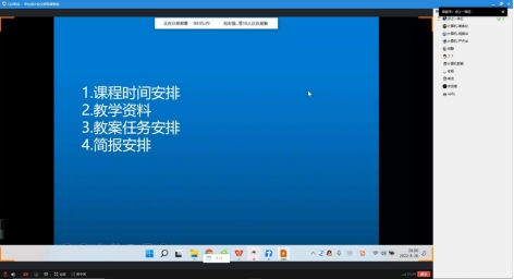 首先万川梅老师介绍了教学大纲,包括课程的知识目标、能力目标、职业素养目标、教学内容及学时分配、课程思政以及课程考核。然后讲解了进度计划表,经过反复讨论,确定了阶段性成绩考核表。最后老师们对教案编写任务进行了反复讨论,万老师调整部署了教案编写任务。