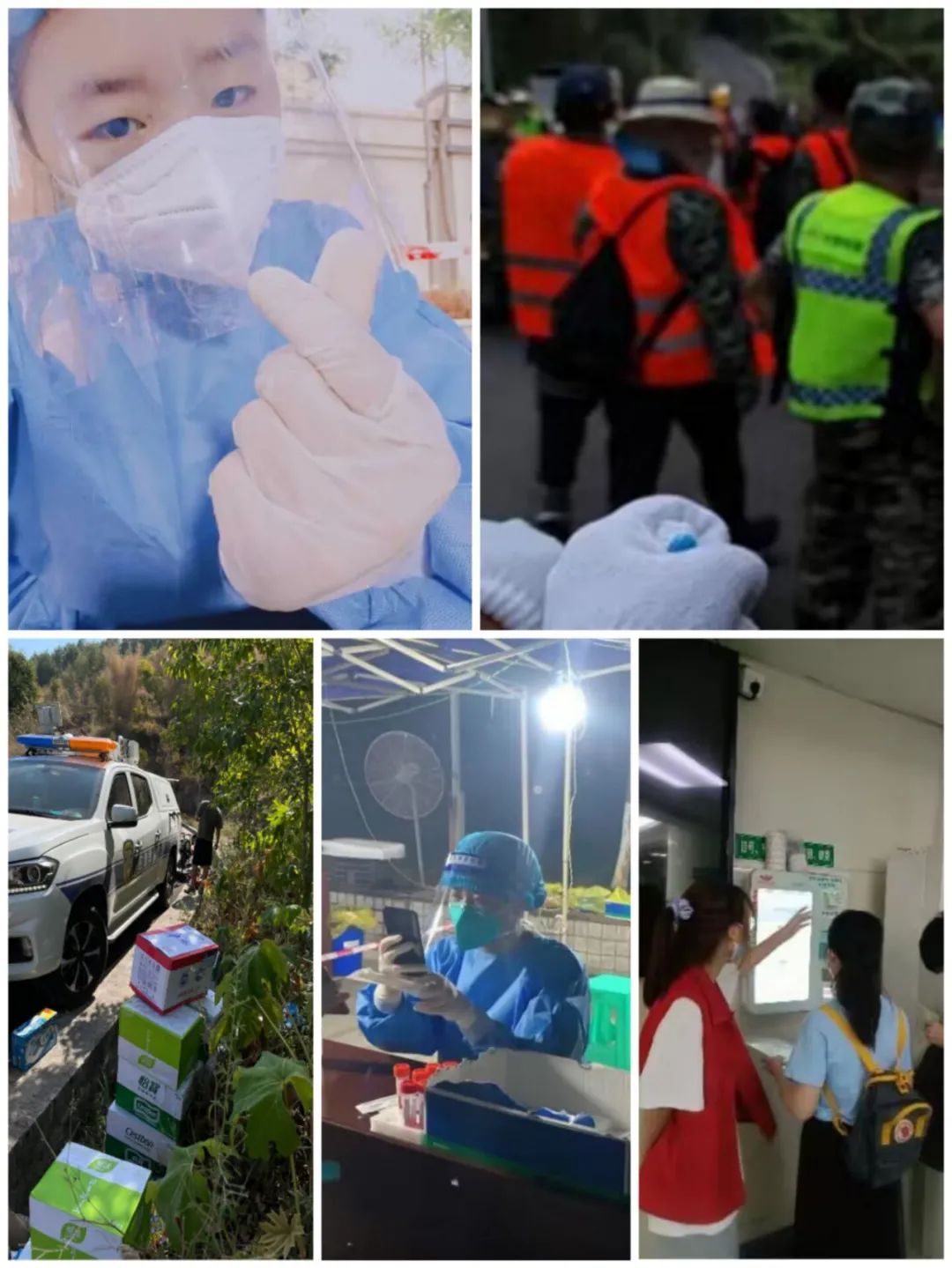 21级物联网4班的李秋松同学,参与社区疫情防控活动,负责采集重庆app进行健康码的扫描以及登记信息,帮助医生更快更方便进行核酸采集工作。