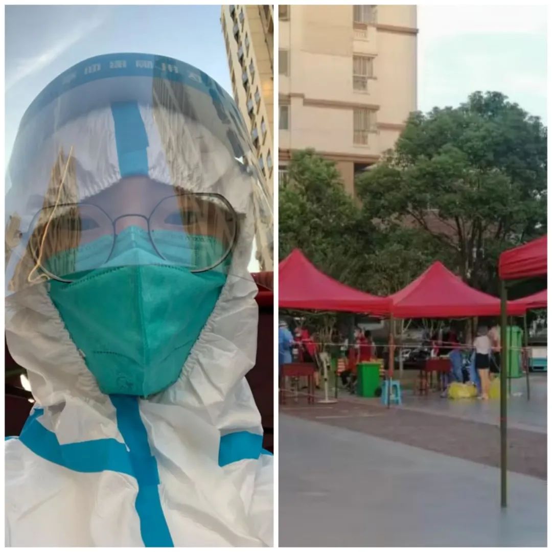 19级计科2班的彭佳慧同学,在暑假期间,参与了疫情防控工作,主要负责给居民录入个人信息和辅助医生完成采样。