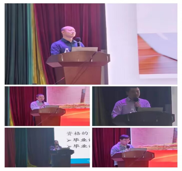本次会议由魏克非科长主持。首先,教务科秦旗科长明确实习及毕业设计有关要求,接着就业科魏克非科长明确就业工作有关要求。会议第三项议程由毕业生代表陈曼同学发言。他分享了自己求职准备心得,也呼吁同学们及早迈出自己就业的第一步。接着,学院党总支书记覃华伟书记作动员讲话,号召同学们提前做好就业准备,利用校招黄金季找到心仪的工作,同时他还着重强调了三方协议的重要性。最后,李发陵院长也围绕校外实习和毕业设计等工作作了动员讲话。