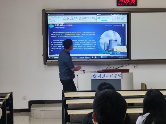 本网讯(文/图 魏克非) 2022年10月21日下午,我院联合重庆市信息通信咨询设计院有限公司在6101教室举办了线下专场招聘会,约40余名2023届毕业生参加了此次招聘会。