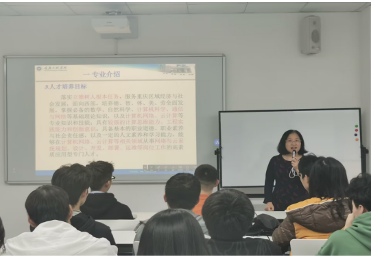 李发陵院长、万川梅老师,首先从计算机科学与技术专业培养方案展开话题,以自身经验阐述了专业课程的必要性、就业岗位的选择及毕业要求。其次,从教师队伍,支持条件进行拓展,坚定了同学们对教学资源,对未来就业的信心。最后,以专业教学体系,学生服务及学生毕业质量向同学们分享了比赛,证书的重要性及对未来就业的益处。